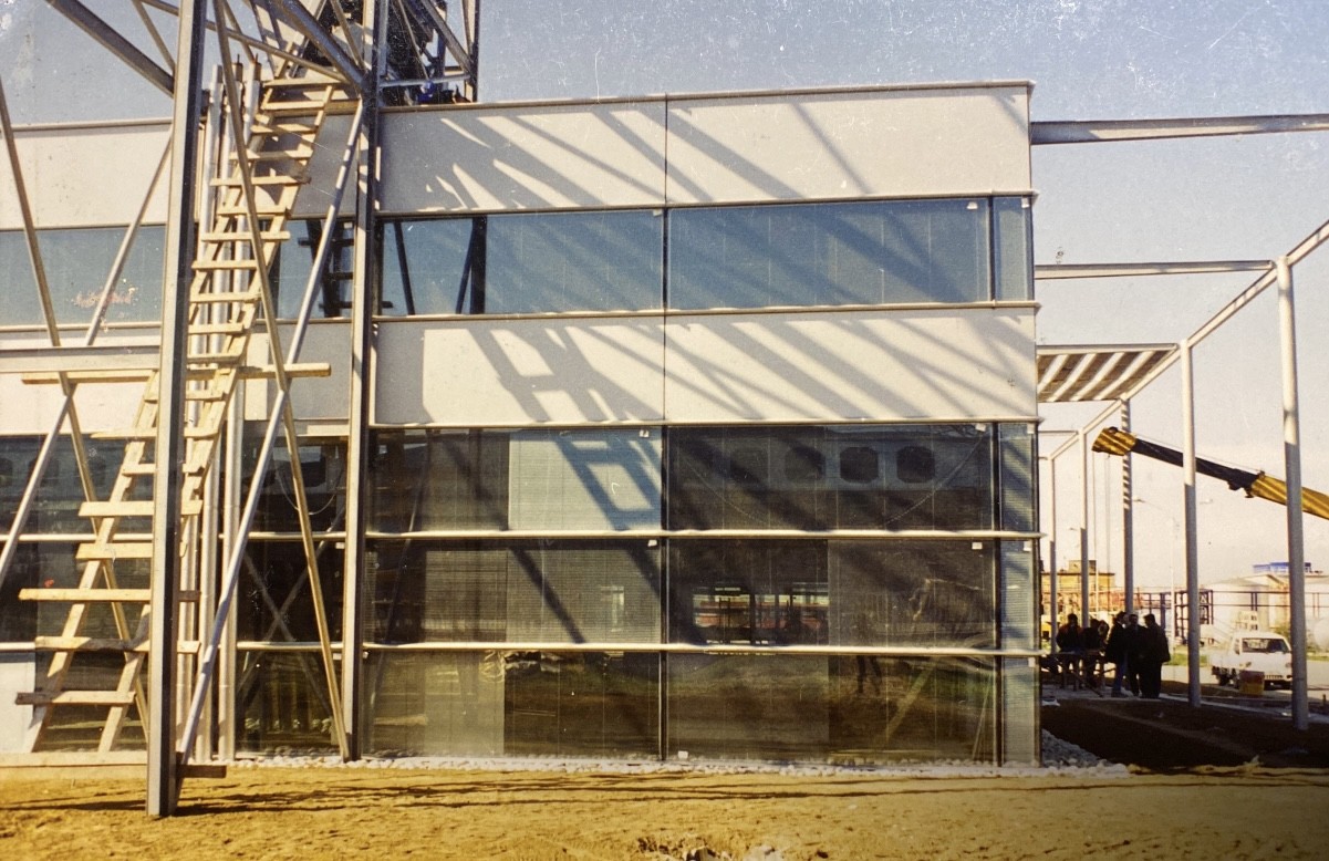 The project is an administrative annex erected inside the premises of the Yalova - Elyaf fiber factory on the south coastline of the Marmara Sea. The factory complex is composed of many large and small buildings built by pre-cast concrete components on a 42 acres of land.The program for the annex is a result of the changing needs of the 25 year-old factory complex and consists of new rooms for training, meeting and administration functions. Designing in an industrial context the main reference has been the contradictory relation between the existing massive buildings and the metal pipes, bridges, towers and silos surrounding them.